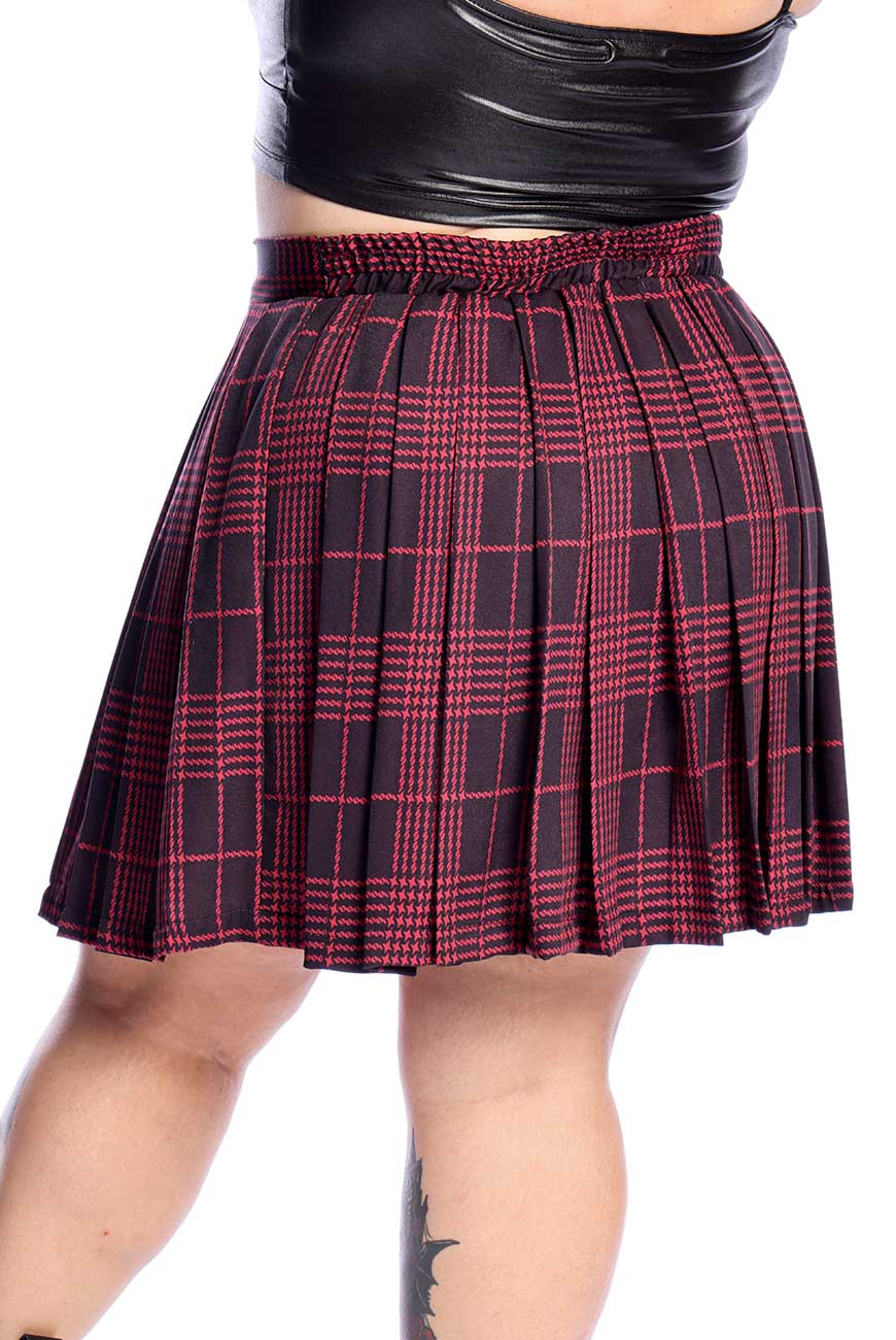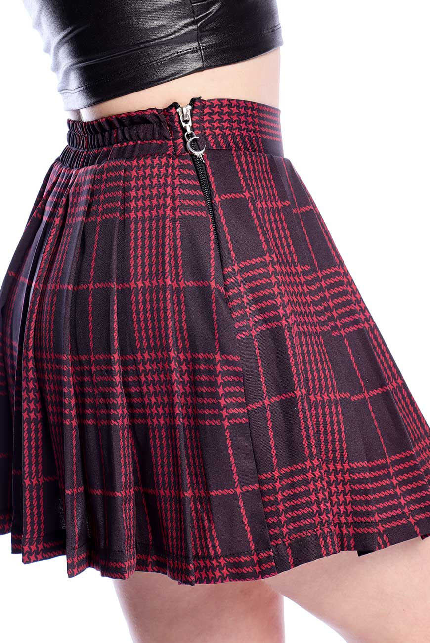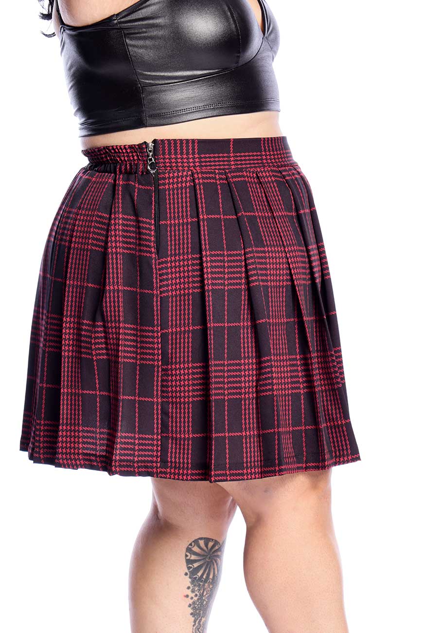Saia de Pregas Xadrez Preta e Vermelha Nina