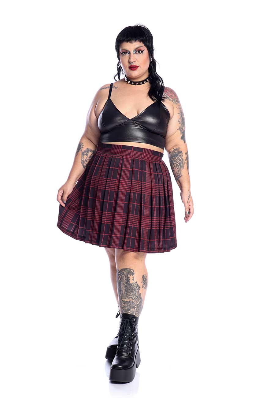 Produzida em crepe com viscose super macio e confortável, é um modelo de pregas inspirado no estilo colegial, sendo uma peça coringa que compõe muito bem em diversos looks. Com estampa xadrez vermelha exclusiva da Reversa, é aquele clássico atemporal que todo alternativo deve ter no guarda-roupas.