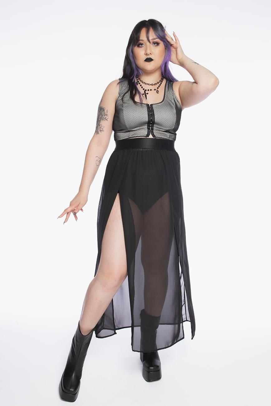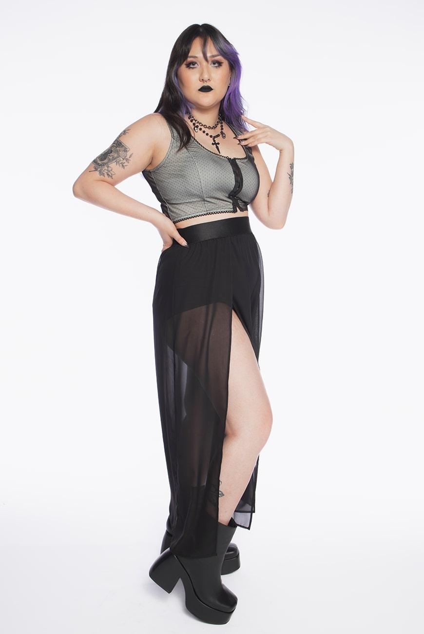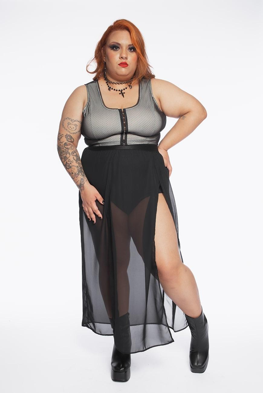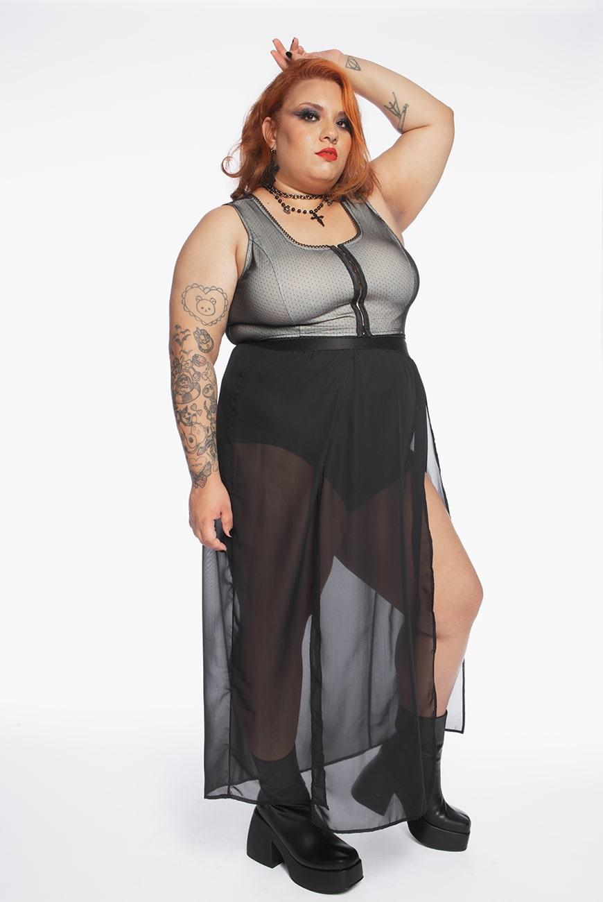 A Saia Fendas Aura Noir foi feita para realçar a sua beleza fantasmagórica, assombrando corações por onde passa!