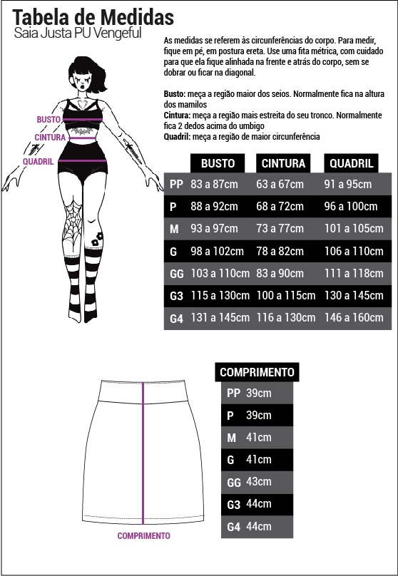 Modelo tamanho PP: Altura: 1,60m/ Cintura: 66cm/ Busto: 84cm/ Quadril: 94cm.
