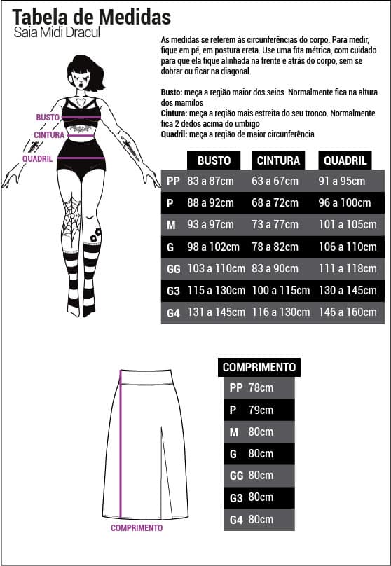 Modelo tamanho 3G: Altura: 1,60m/ Busto: 120cm/ Cintura: 101cm/ Quadril: 140cm.