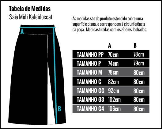 Modelo tamanho G3: Altura: 1,60m/ Cintura: 105cm/ Busto: 126cm/ Quadril: 141cm.