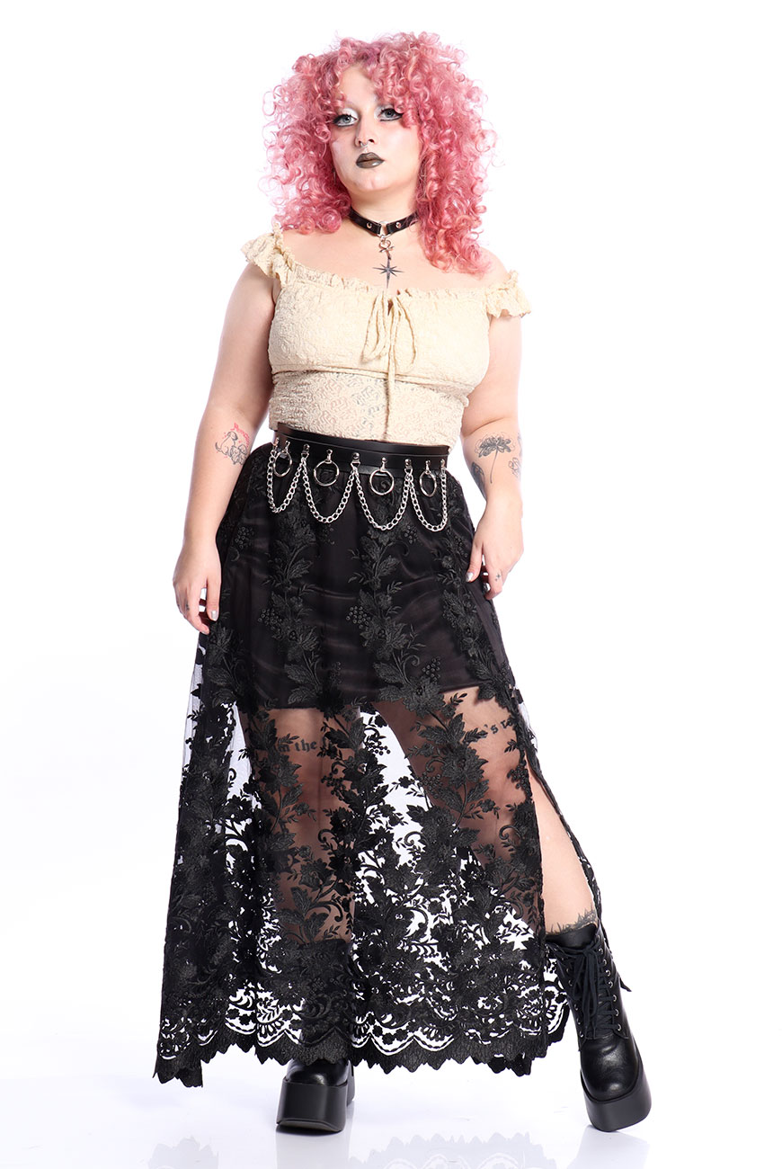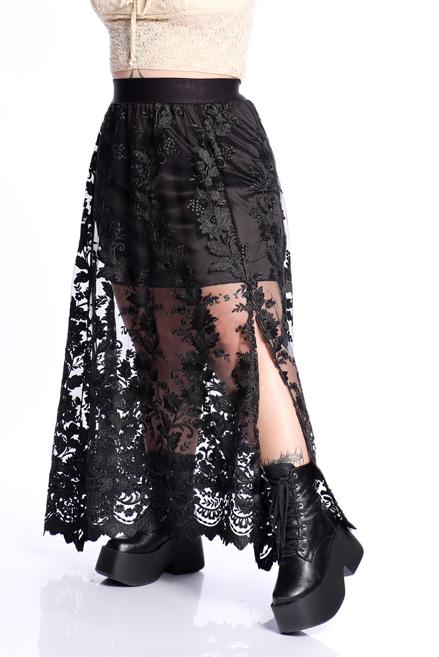 A Saia Renda Preta Iris é perfeita para compor o seu look gótico romântico!