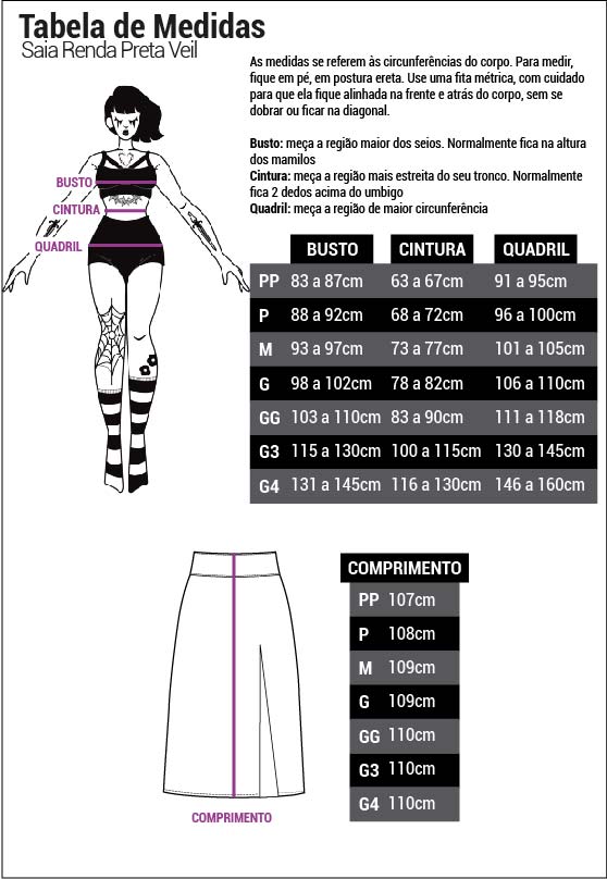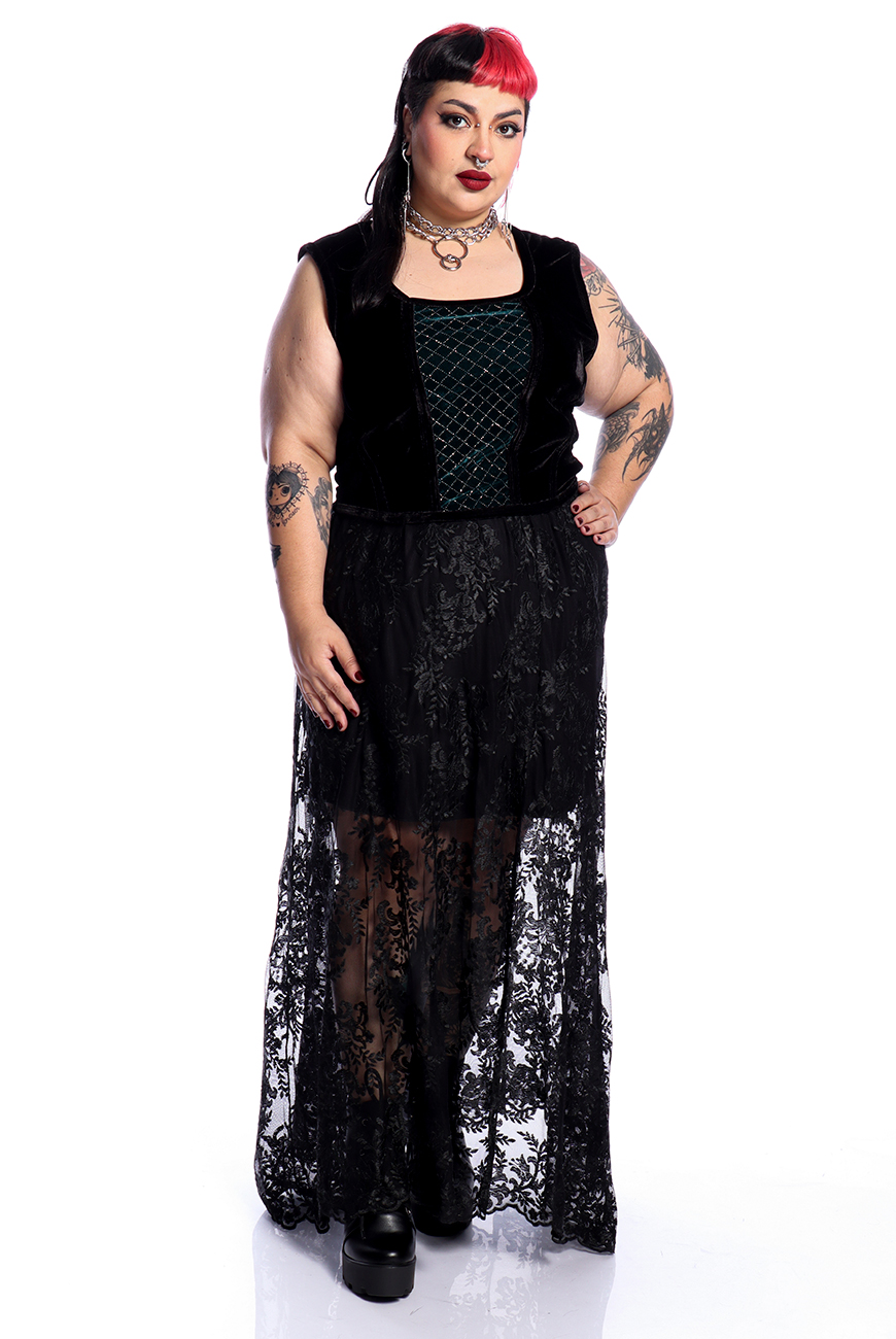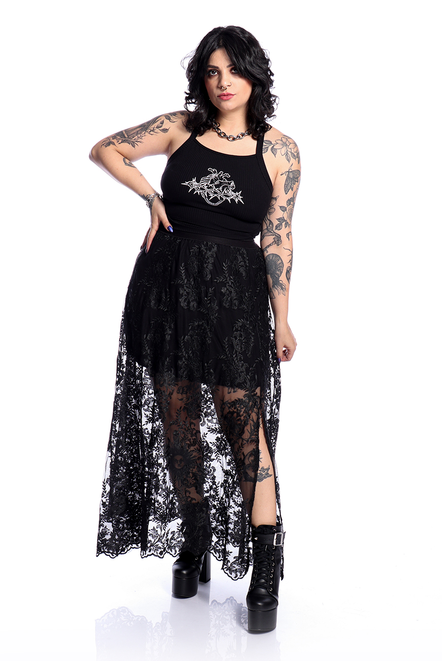 A Saia Renda Preta Veil é perfeita para compor o seu look gótico romântico!