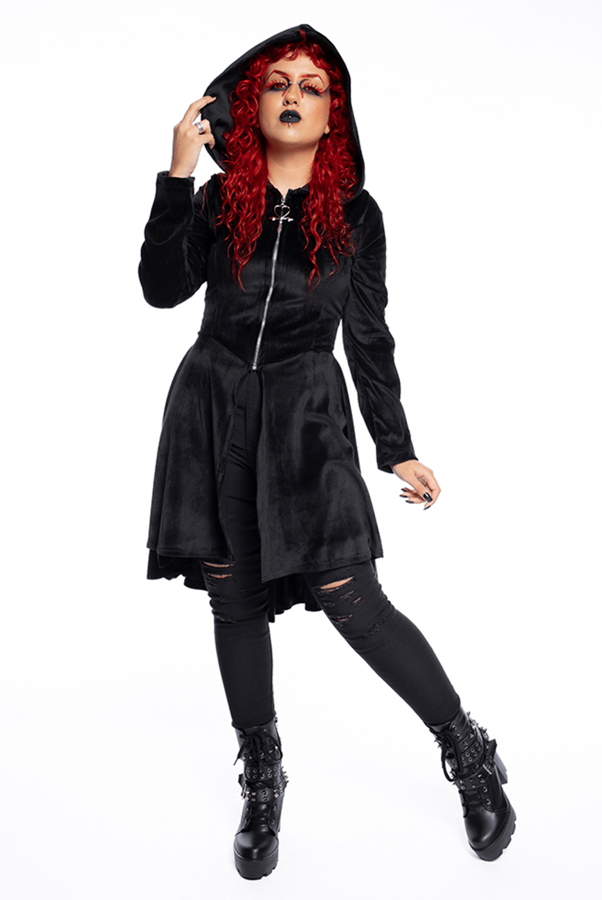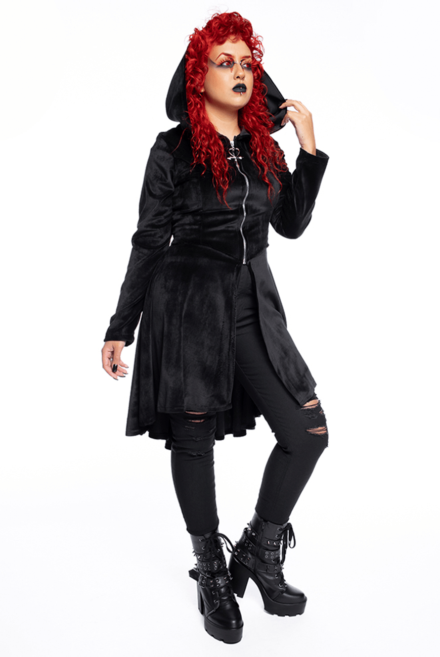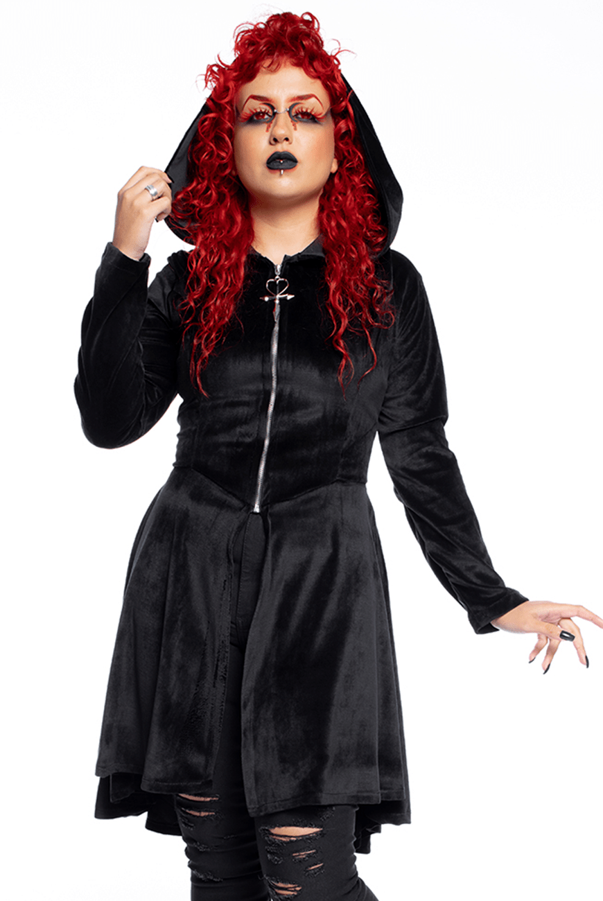 Alto inverno Reversa com o sobretudo mais vampiresco e inesquecível! Inspirado no misterioso vampiro Armand das histórias da escritora Anne Rice, o sobretudo que você mais ama e conhece é feito em plush, de comprimento maxi, com super capuz maravilhoso, zíper na parte frontal com puxador exclusivo de Ankh Vampire Heart, além de ajuste com ilhoses e cordão na parte traseira, que proporciona uma silhueta bem marcada e conforto.