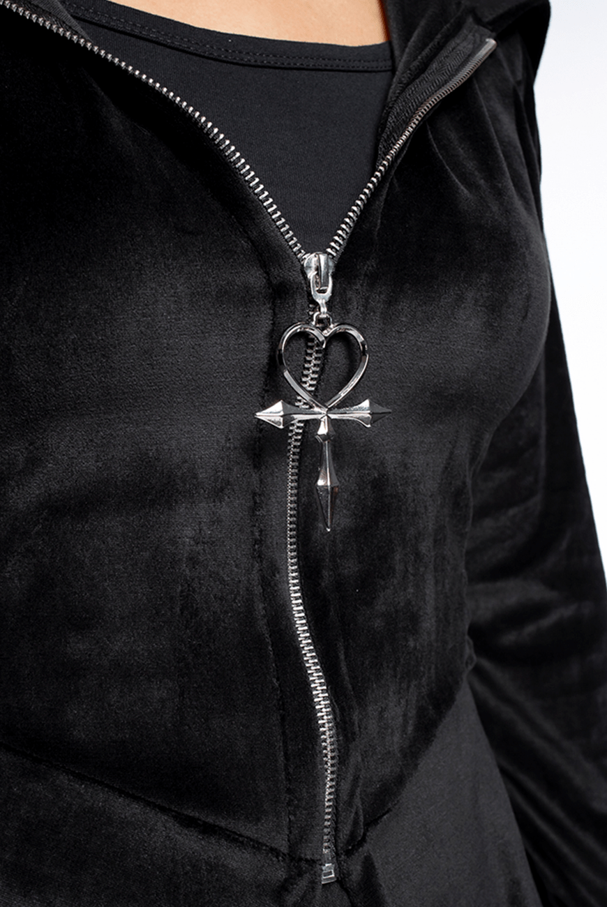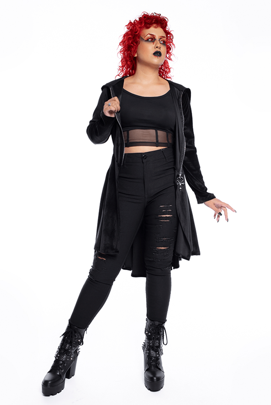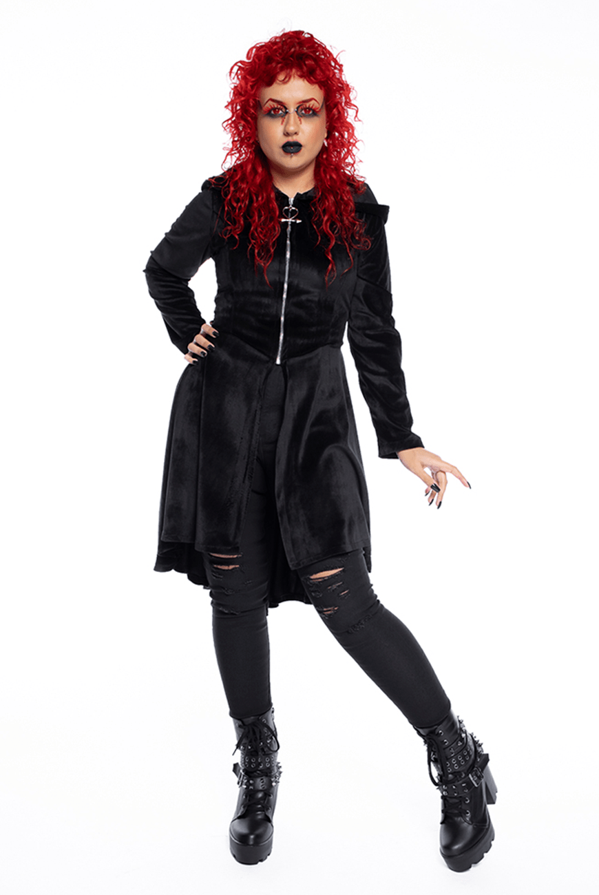 Alto inverno Reversa com o sobretudo mais vampiresco e inesquecível! Inspirado no misterioso vampiro Armand das histórias da escritora Anne Rice, o sobretudo que você mais ama e conhece é feito em plush, de comprimento maxi, com super capuz maravilhoso, zíper na parte frontal com puxador exclusivo de Ankh Vampire Heart, além de ajuste com ilhoses e cordão na parte traseira, que proporciona uma silhueta bem marcada e conforto.