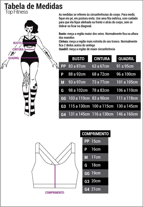 Modelo tamanho 3G: Altura: 1,60m/ Busto: 120cm/ Cintura: 101cm/ Quadril: 140cm.