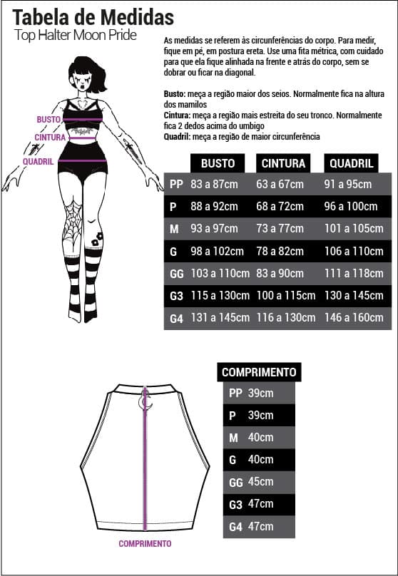 O Top Halter Moon Pride é produzido em malha canelada super confortável e macia, com ótimo ajuste ao corpo.