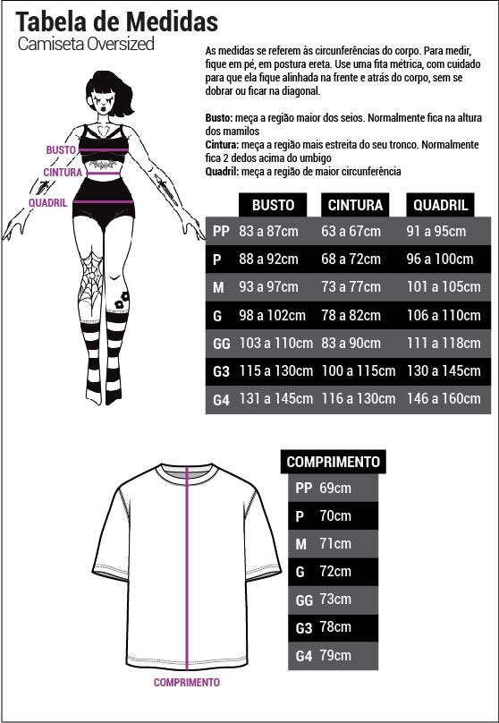 Modelo tamanho M: Altura: 1,60m/ Cintura: 72cm/ Busto: 91cm/ Quadril: 106cm.