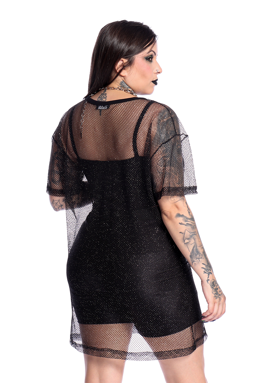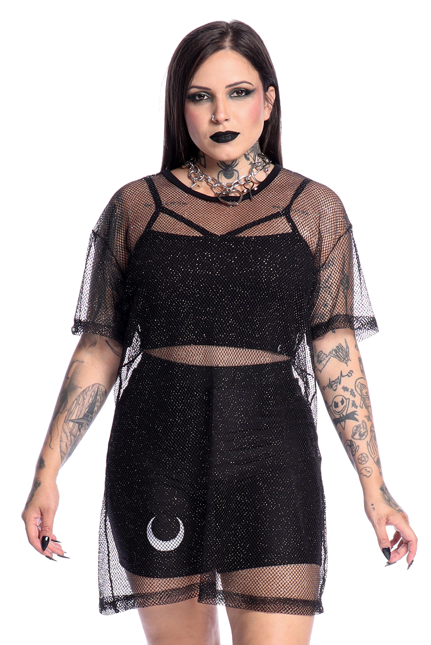 O Vestido Camiseta Arrastão Preto tem modelagem oversized unissex e manga curta, tendo o seu caimento mais larguinho e confortável.