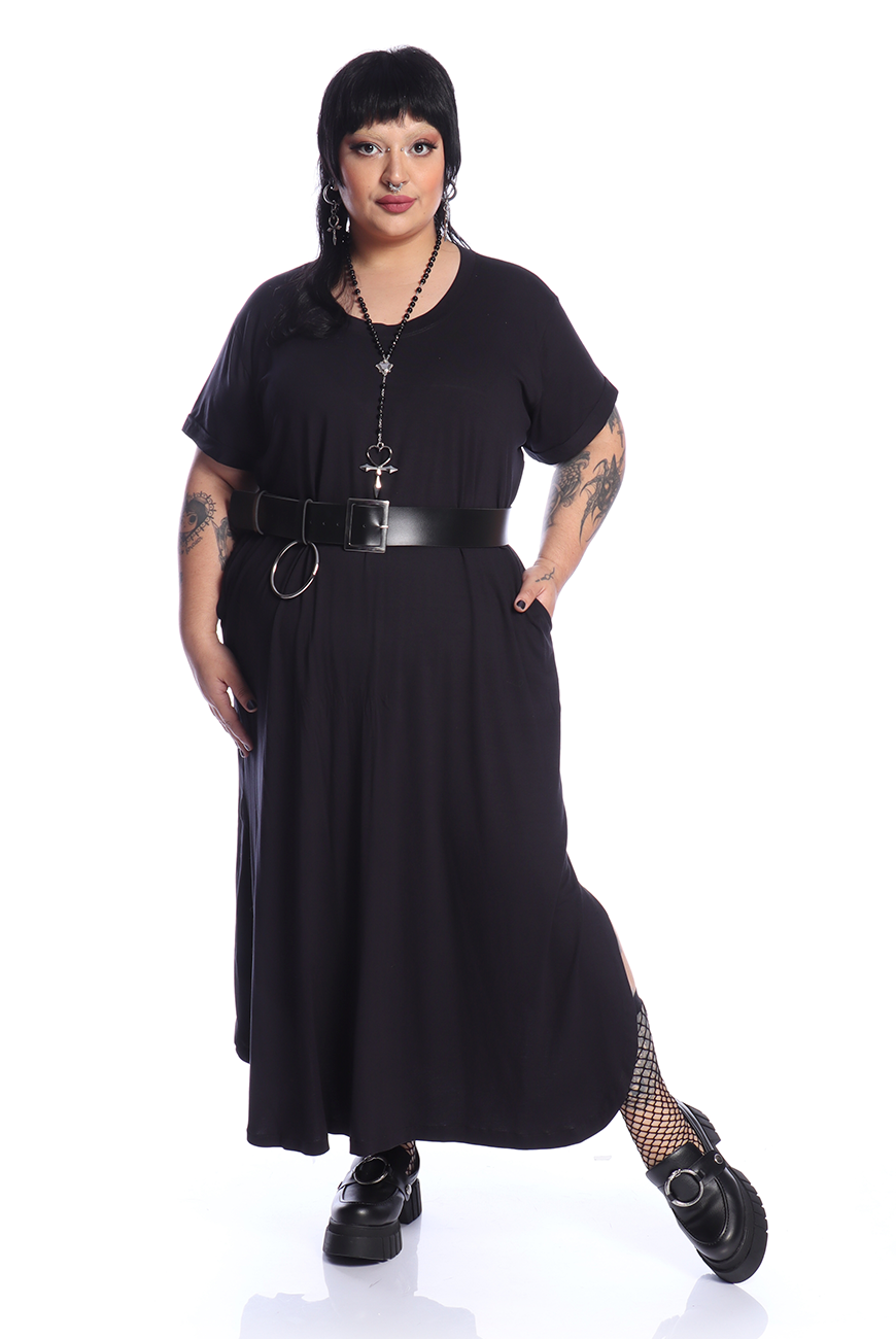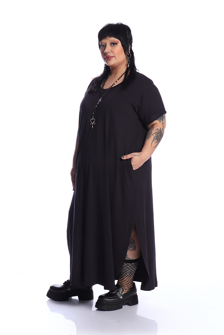O Vestido Camisetão Bolsos Basics é produzido em viscolycra super macia e leve, possui modelagem bem ampla e comprimento longo, mangas curtas, e o mais incrível: BOLSOS!