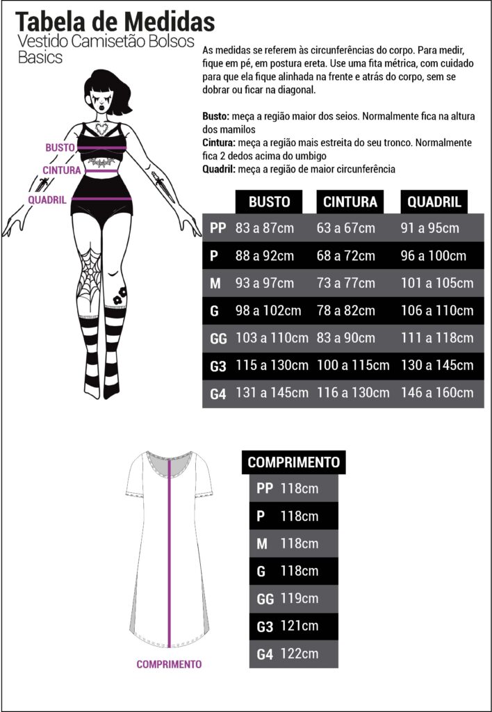 Modelo tamanho 3G: Altura: 1,60m/ Cintura: 95cm/ Busto: 113cm/ Quadril: 131cm.