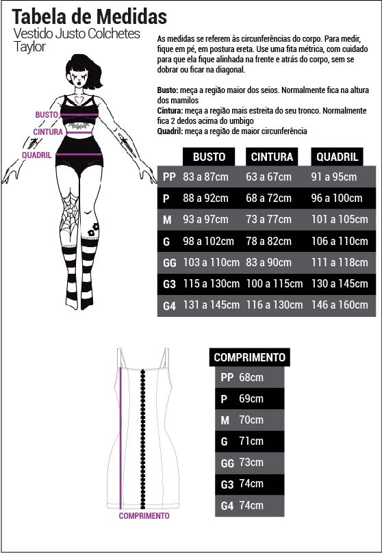 Modelo tamanho G3: Altura: 1,60m/ Cintura: 96cm/ Busto:116cm/ Quadril: 131cm.