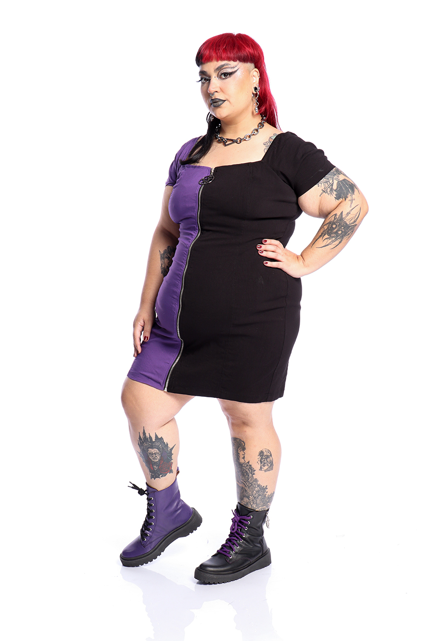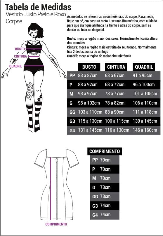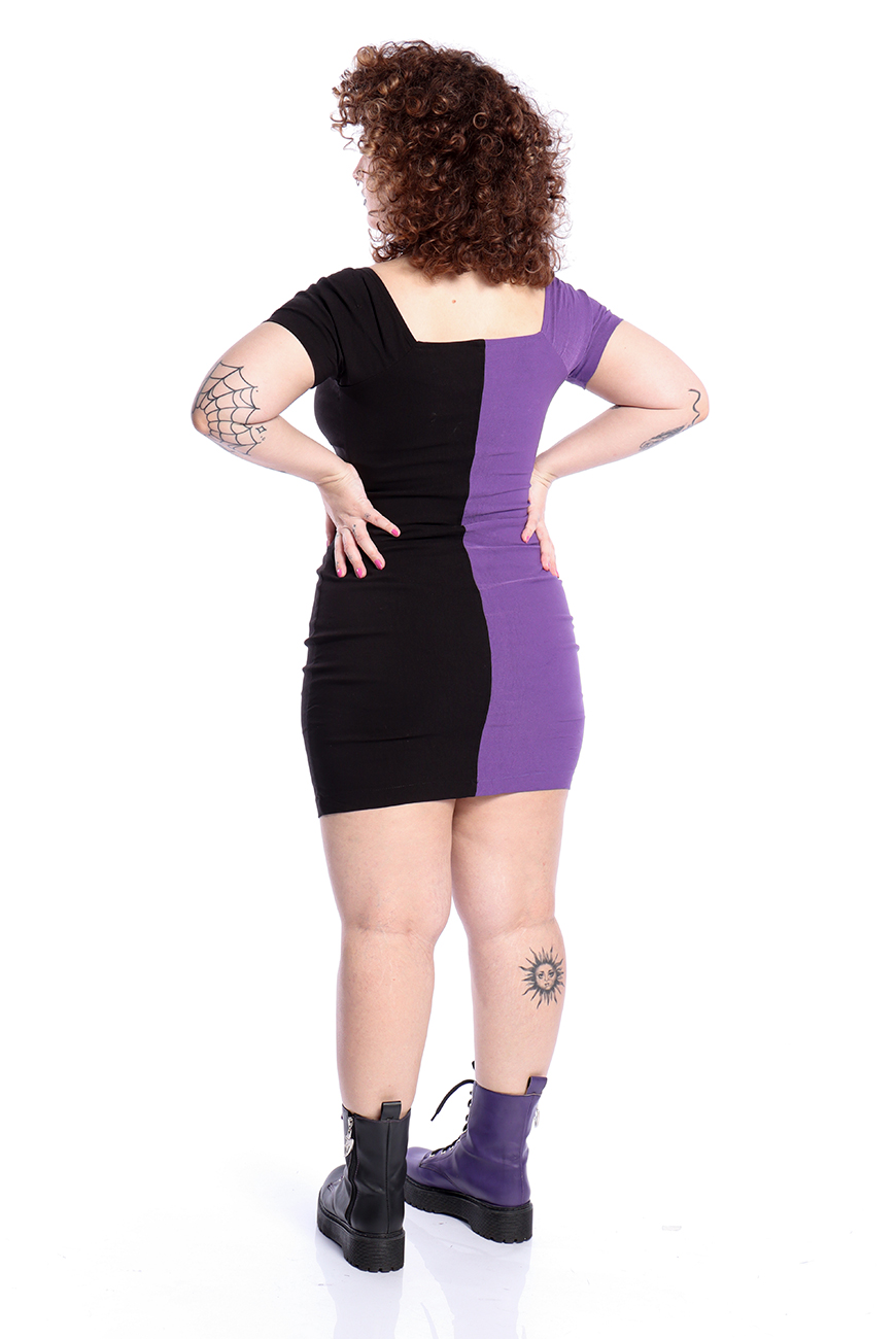 O Vestido Justo Preto e Roxo Corpse é produzido em tecido super macio e encorpado de alta elasticidade nas cores preta e roxa, com um ajuste perfeito ao corpo, sem abrir mão do conforto.