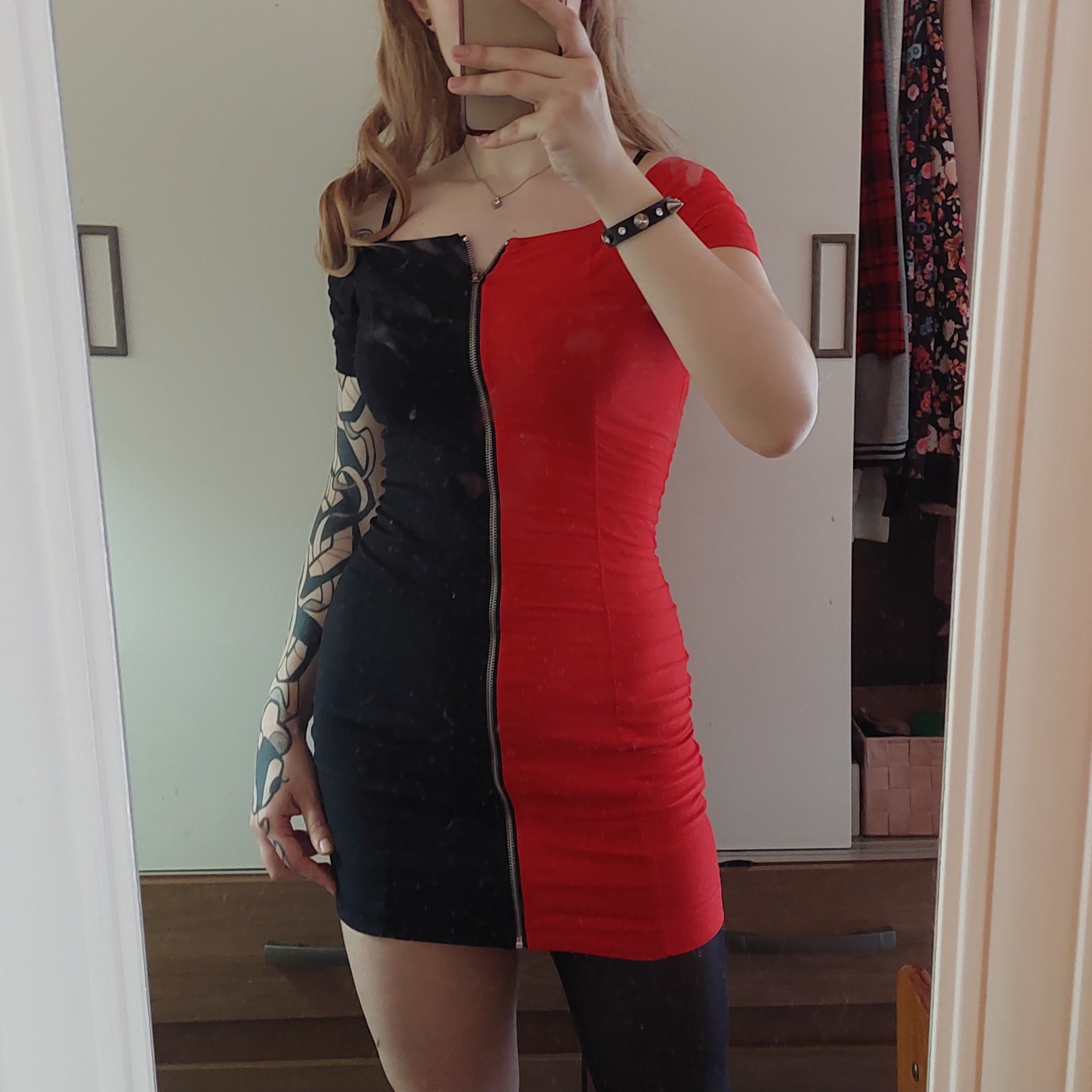 também acho importante avisar que o vermelho do vestido em pessoa é um pouco mais escuro e frio do que nas fotos do anúncio, e que essa metade vermelha tem uma transparência suave que pode marcar roupas de baixo mais escuras.