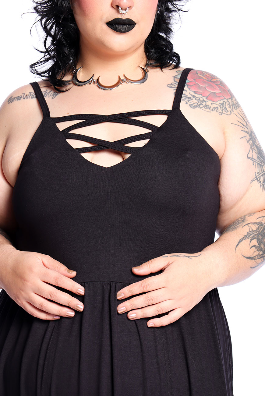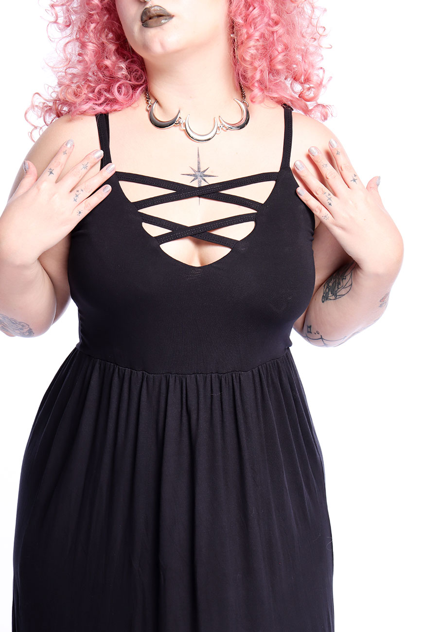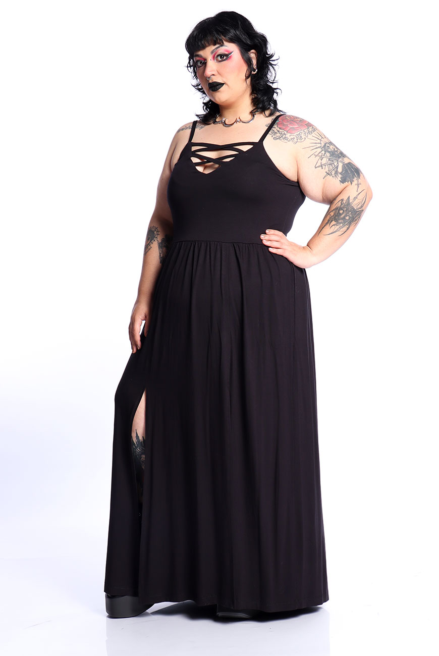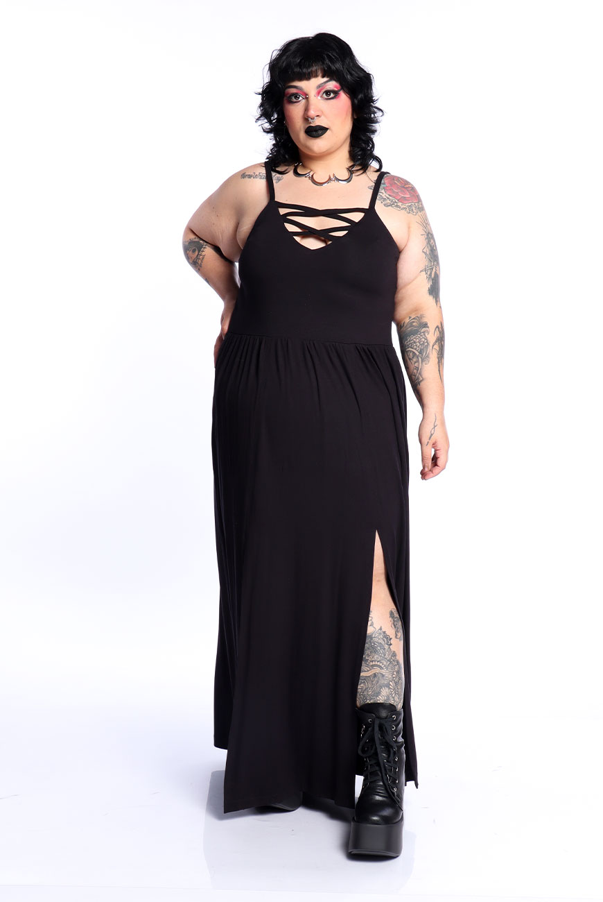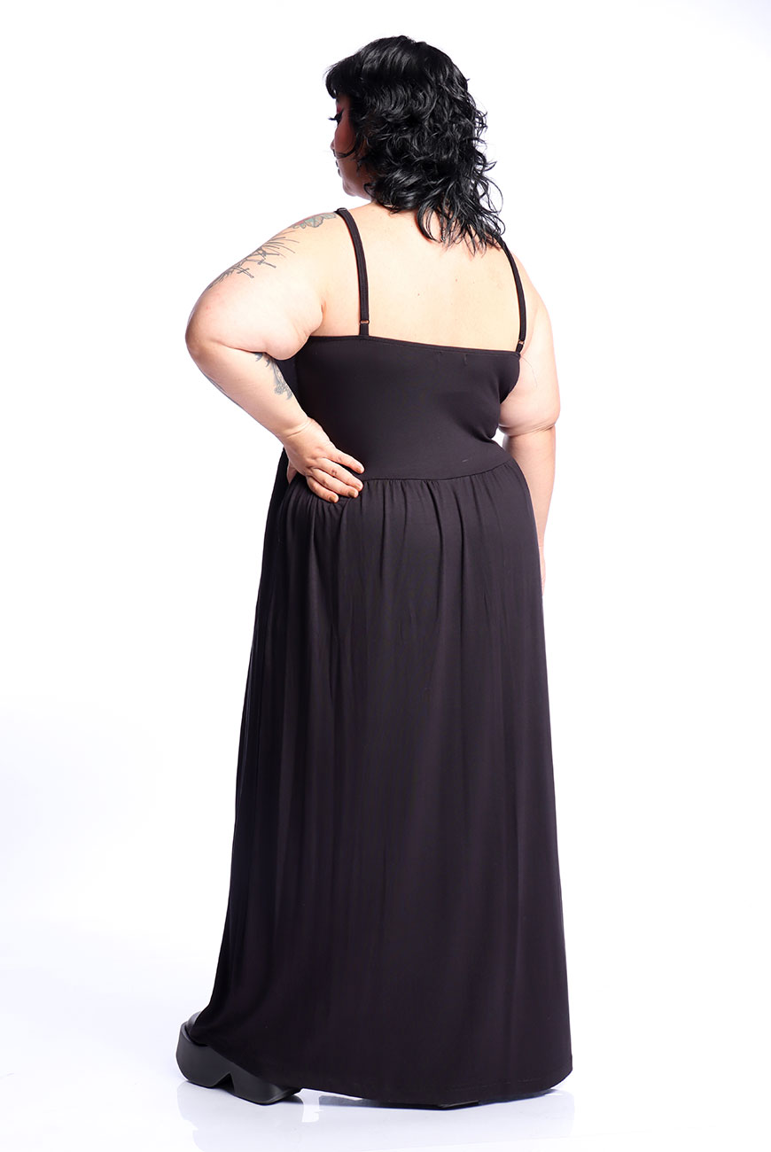 O Vestido Longo Fendas Decantas foi produzido em viscolycra super macia, leve e confortável, ideal para usar em dias mais quentes e continuar fresquinha. Tem duas fendas frontais e detalhes tipo strappy no decote, forro duplo na parte do busto para não marcar e alças com regulador para mais conforto.