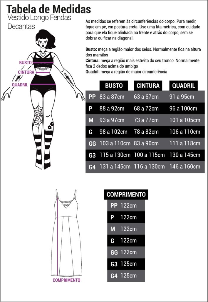 Modelo tamanho G3: Altura: 1,60m/ Cintura: 96cm/ Busto:116cm/ Quadril: 131cm.