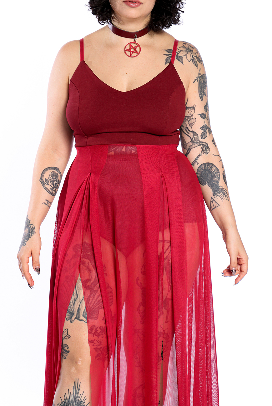 O Vestido Longo Tule Blood Aconite é o vestido ideal para você realizar seu sonho de ser a própria noiva do Drácula!