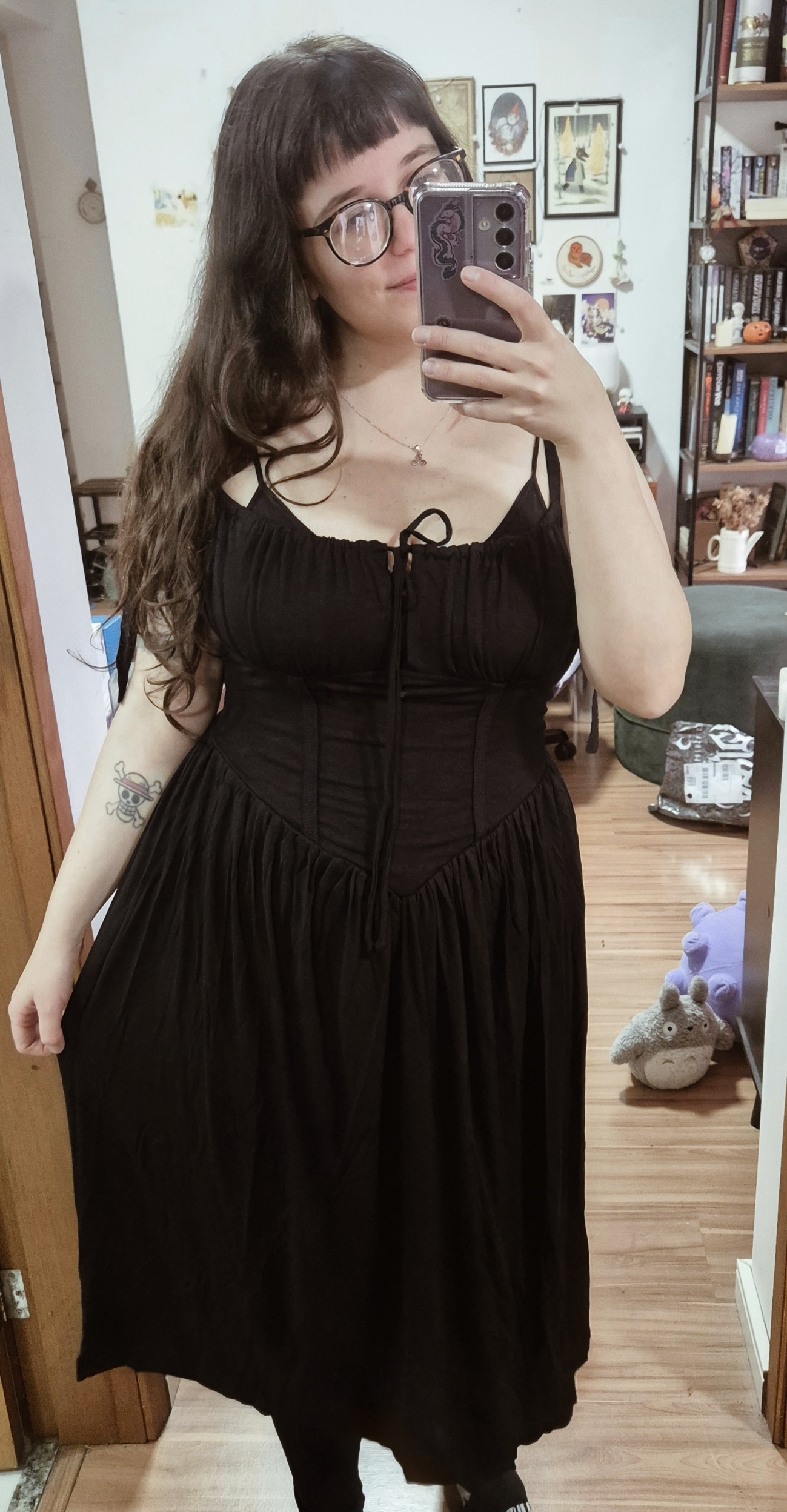 Lindo e muito confortável! O tecido é super fresquinho, não pesa em nada. Fica perfeito com um coturno ou botinha bem bruxinha 🥰