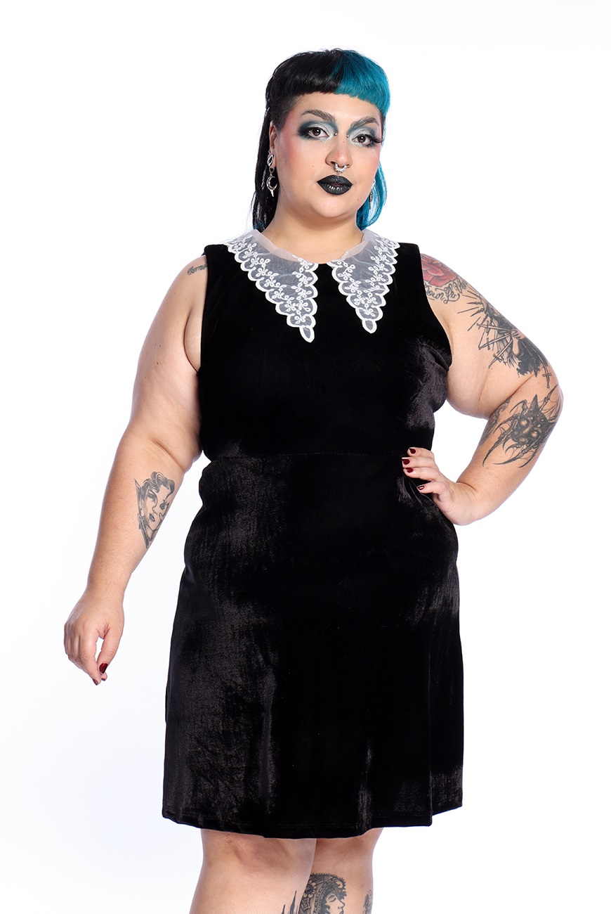 Vestido Veludo Preto Gola Weird