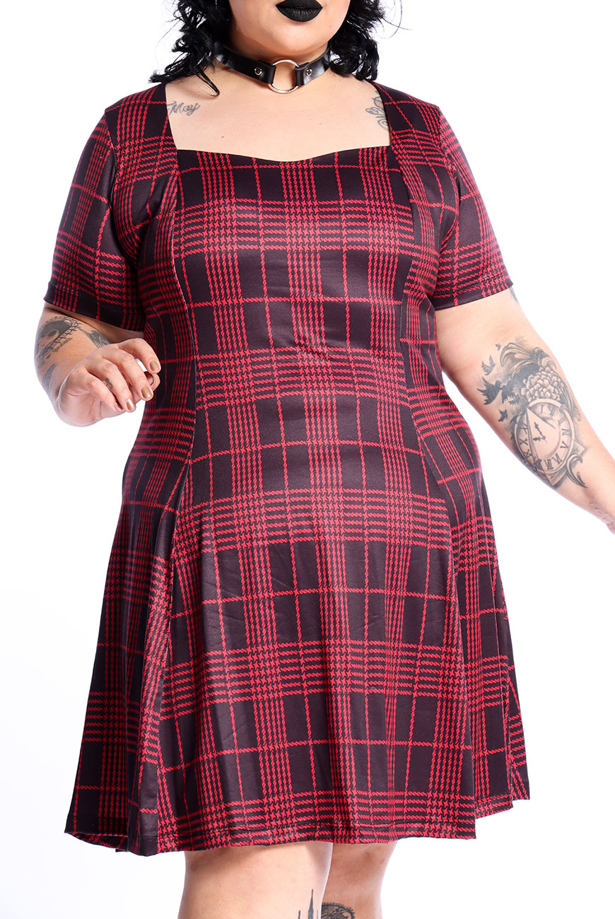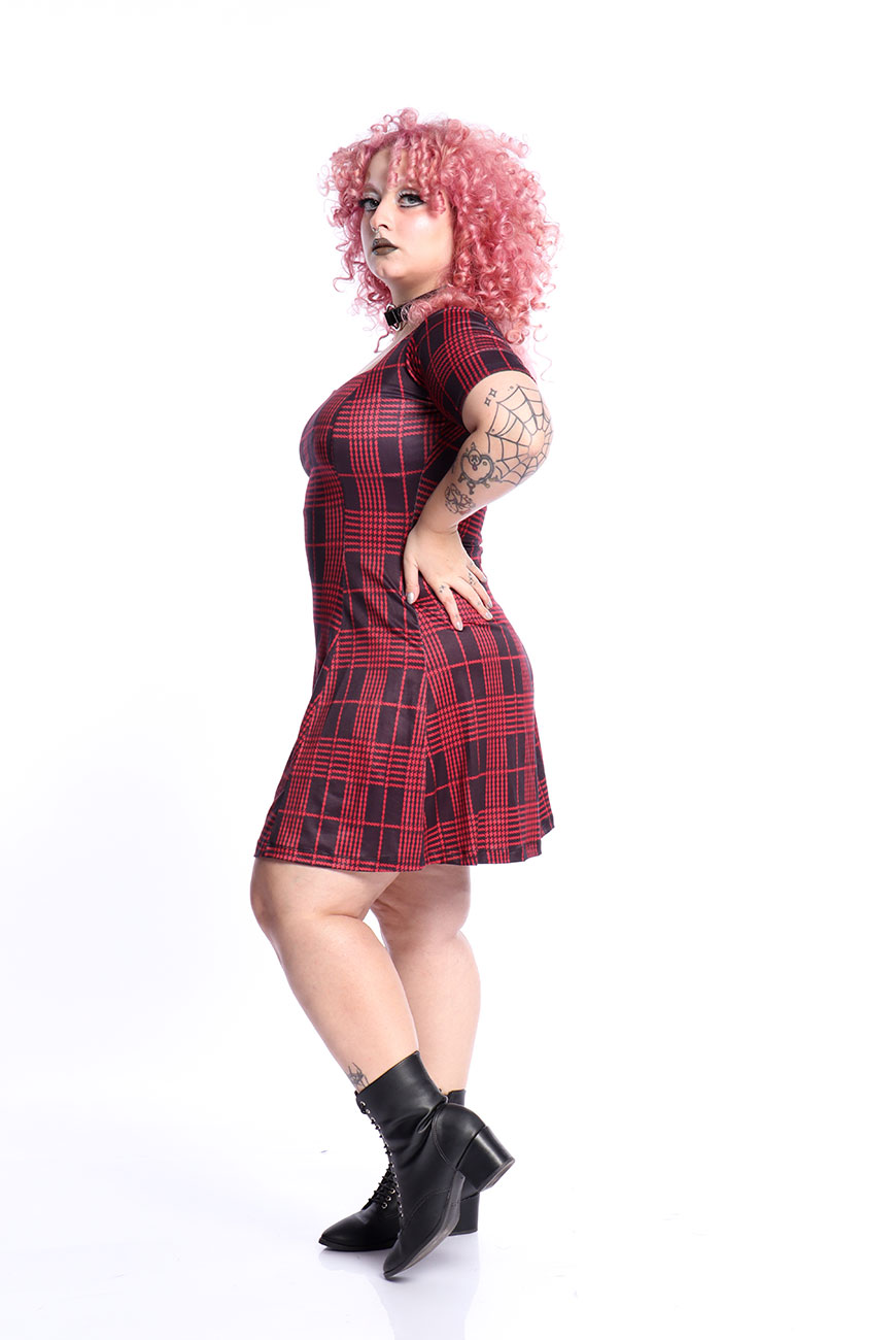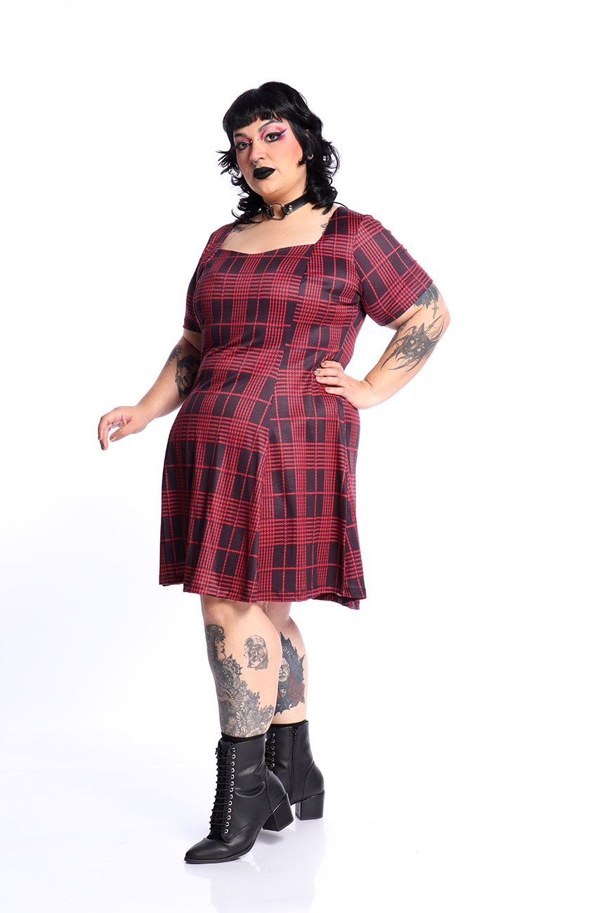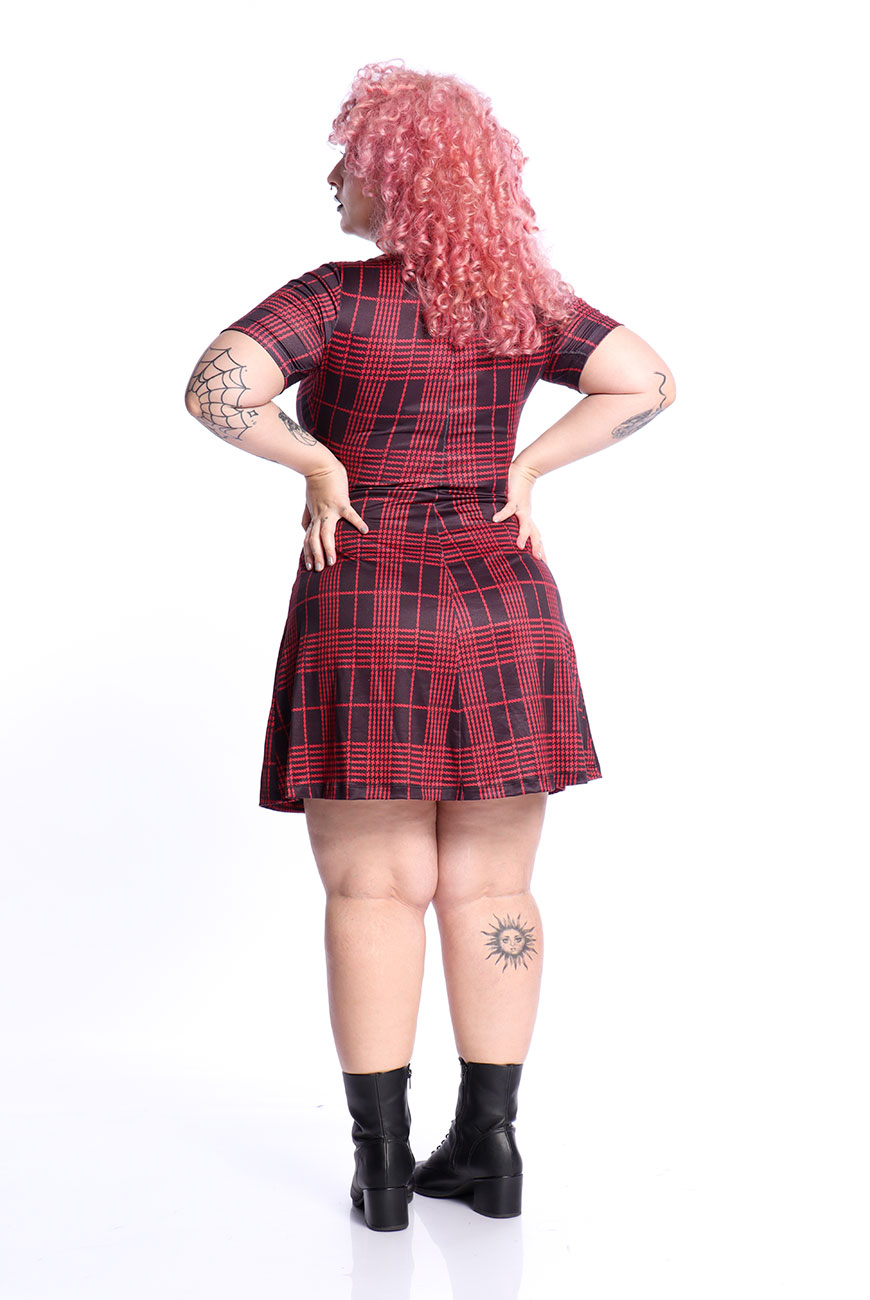 Vestido Xadrez Preto e Vermelho Crimson Nancy