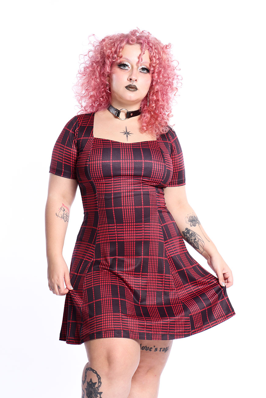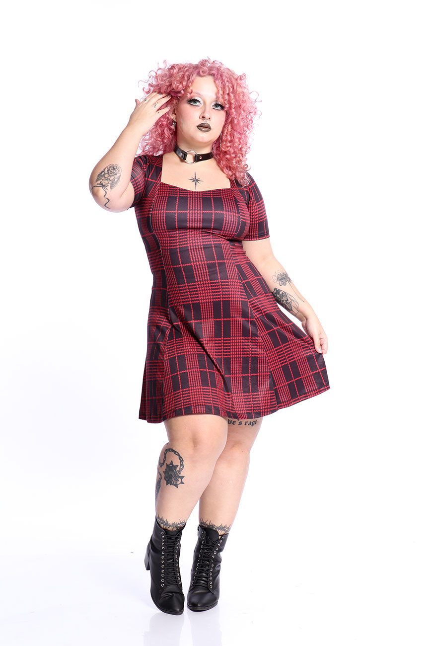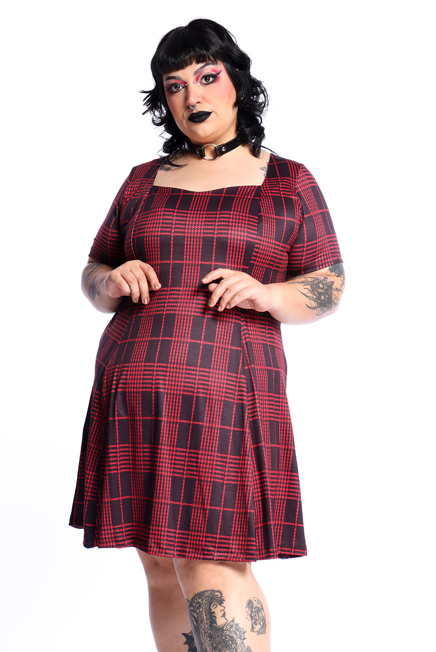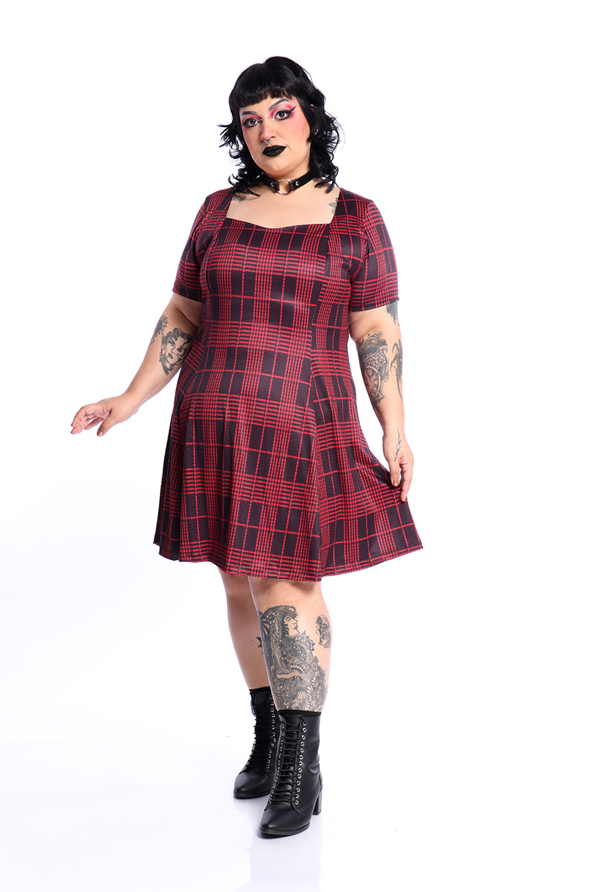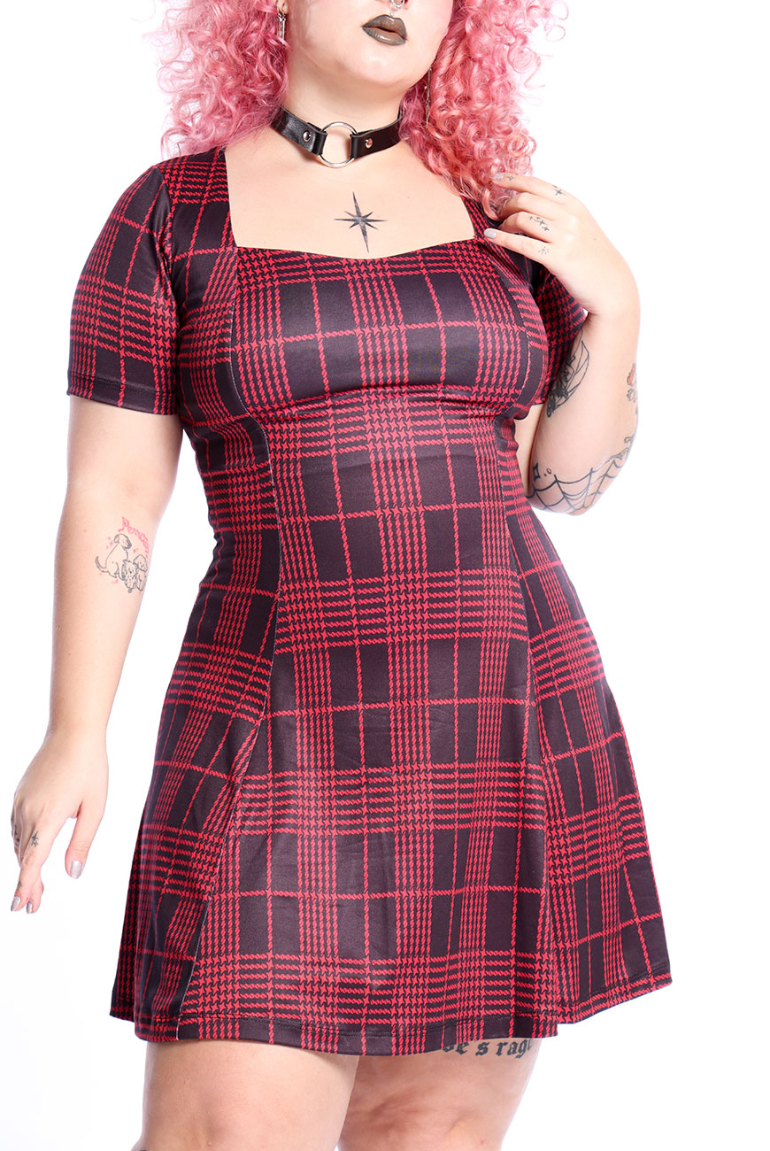 Vestido Xadrez Preto e Vermelho Crimson Nancy