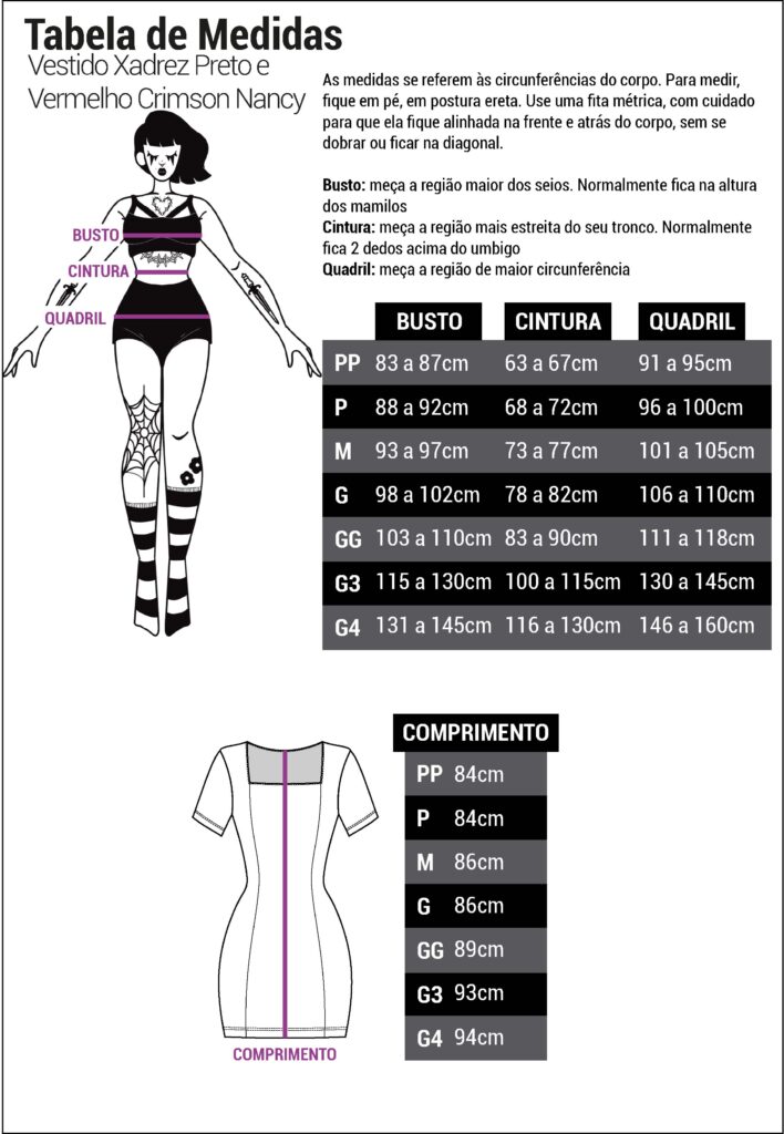 Modelo tamanho M: Altura: 1,55m/ Cintura: 77cm/ Busto: 96cm/ Quadril: 110cm.